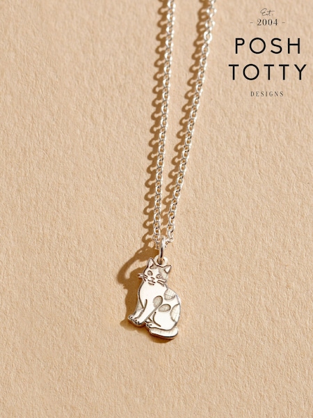 Posh Totty Designs Sterling Silver Personalised Pet Cat Dinky Charm Necklace