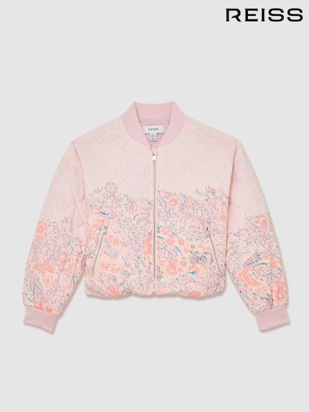 Reiss Pink Nina Quilted Floral Bomber Jacket