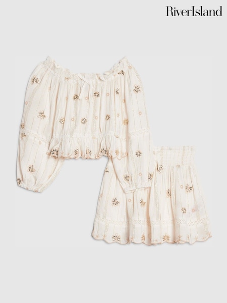 River Island Cream Girls Split Back Top and Leggings Set