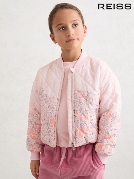 Reiss Pink Nina 9-13 yrs Quilted Floral Bomber Jacket