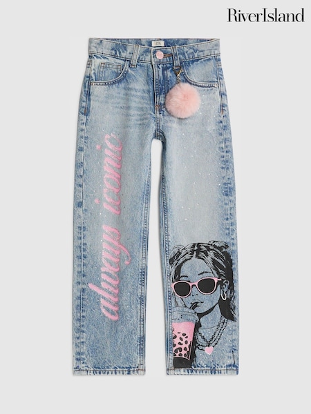 River Island Blue Graffiti Girl Straight Leg Jeans