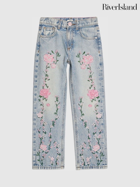 River Island Blue Floral Straight Leg Jeans