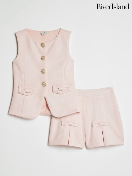 River Island Pink Suedette Waistcoat & Skort Set