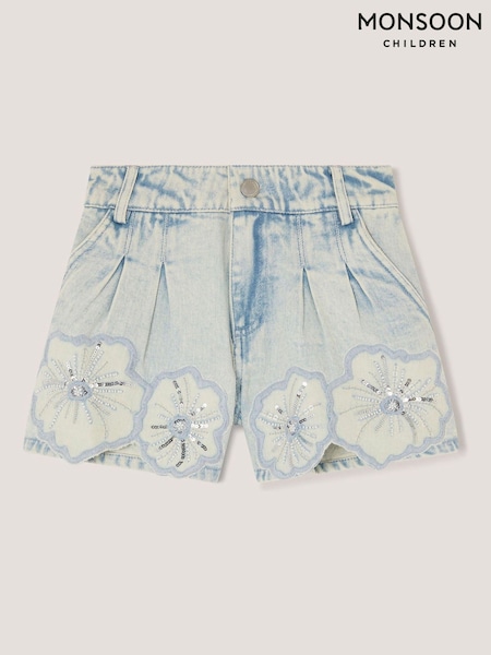 Monsoon Blue Sequin Flower Denim Shorts
