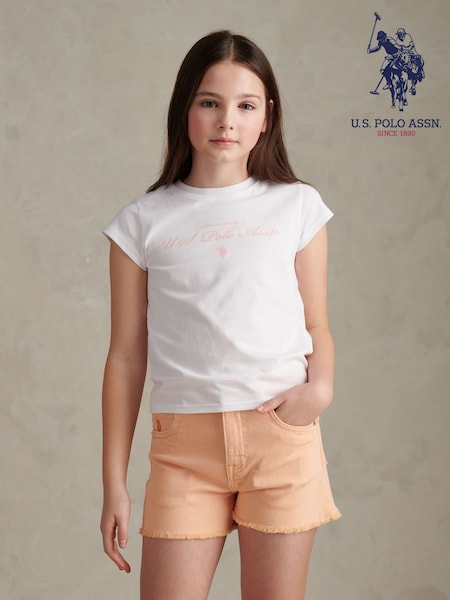 U.S. Polo Assn White Script Logo Cap Sleeve T-Shirt