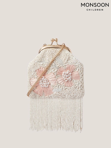 Monsoon Cream Flower Beaded Tassel Bag