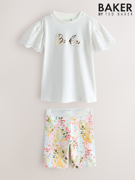 Baker by Ted Baker Broderie Sleeve T-Shirt & Floral Cycle Short 2 Piece Set