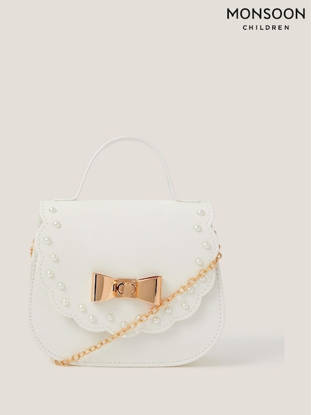 Monsoon White Pearl Bow Bag & Hair Clip Set