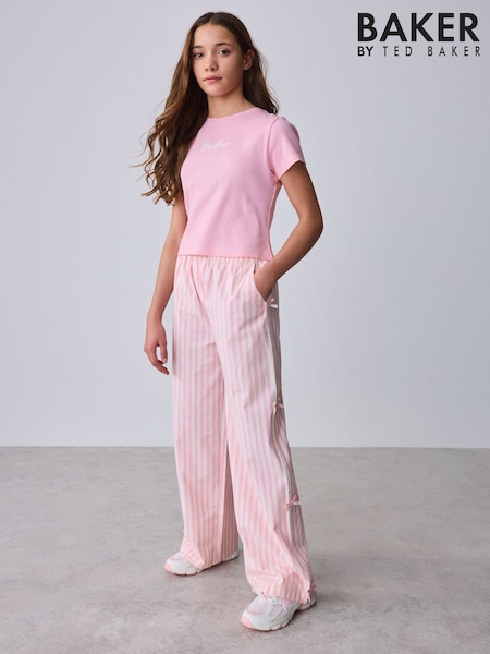 Baker by Ted Baker 2 Piece Pink Ribbed T-Shirt & Pinstripe Trousers Set