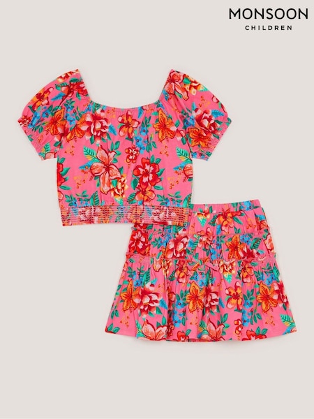Monsoon Pink Tropical Floral Jersey Top & Skort Set