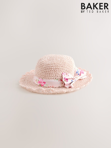 Baker by Ted Baker Pink Straw Effect Hat with Bow