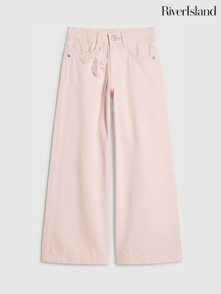River Island Pink Keyring Lace Wide Leg Jeans