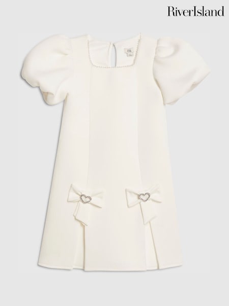 River Island Cream Puff Sleeve Scuba Bow Dress