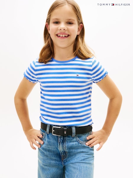 Tommy Hilfiger Blue Essential Ruffle Extra Slim Ribbed Top