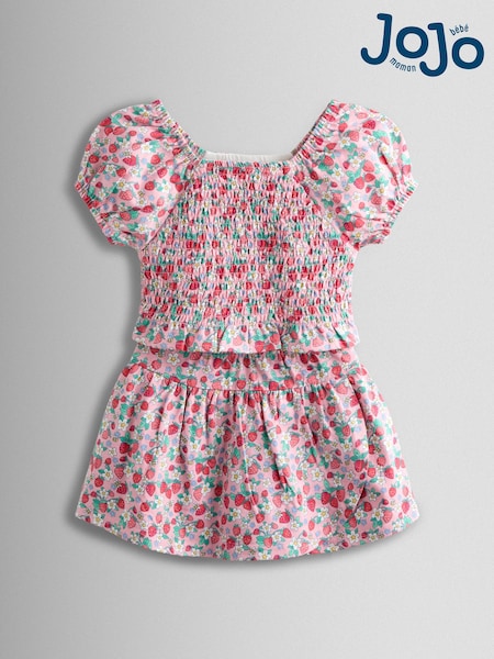 JoJo Maman Bébé Pink Smocked Cap Sleeve Top & Skort Set