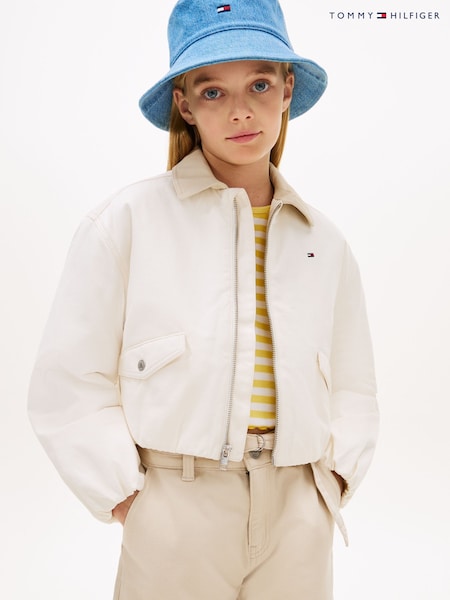 Tommy Hilfiger White Textured Back Logo Relaxed Jacket