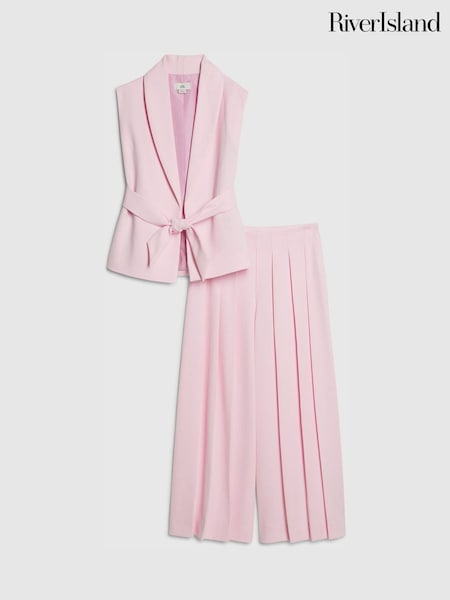 River Island Pink Sleeveless Blazer & Pleated Trousers Set