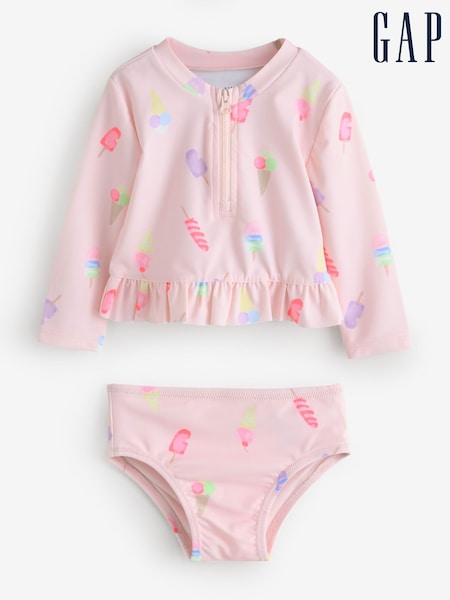 Gap Pink Ice Cream Rash Guard Swim Set (6mths-5yrs)
