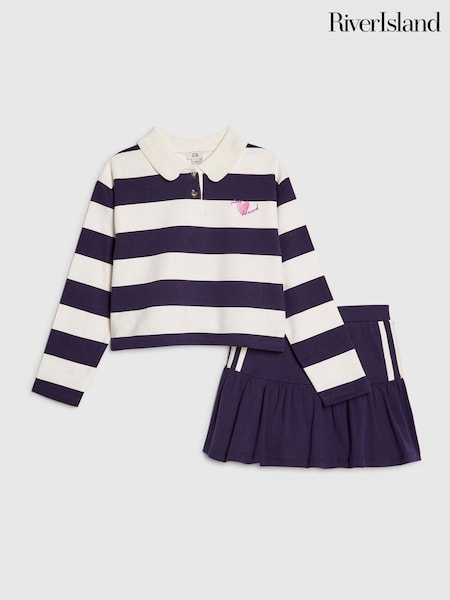 River Island Blue Long Sleeve Stripe Top & Skirt Set