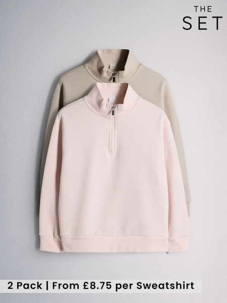 The Set Jersey Zip Neck Sweatshirts 2 Pack Pink/Cream