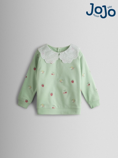JoJo Maman Bébé Sage Green Fruit & Floral Embroidered Sweatshirt