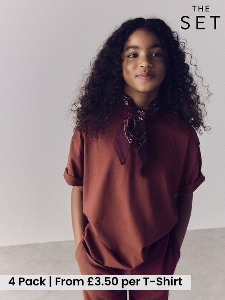 The Set Oversized Cotton Jersey T-Shirts 4 Pack Brown/Red/Pink/Cream