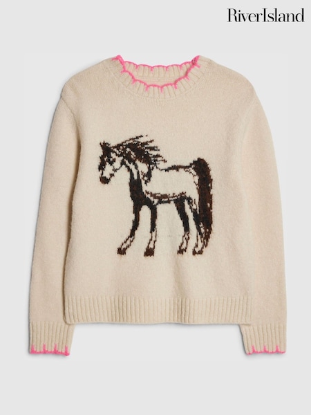 River Island Cream Horse Knitted Jumper