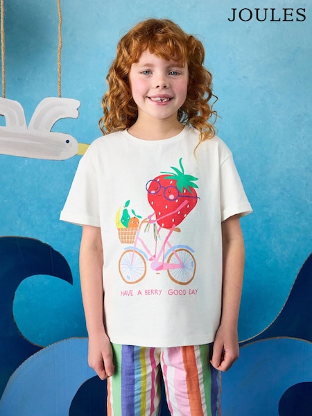 Joules Girls' Fundays Cream Graphic Short Sleeve T-Shirt