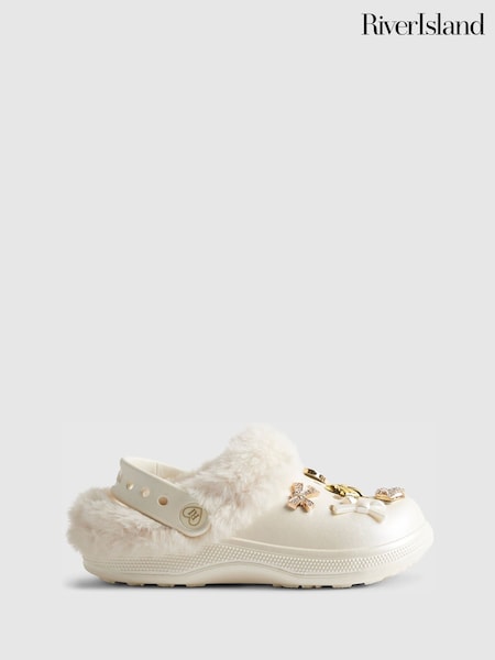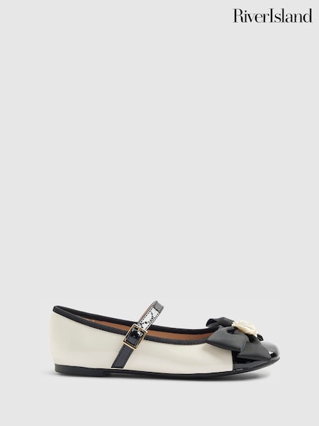 River Island Cream Contrast Rose Bow Ballerina Shoes