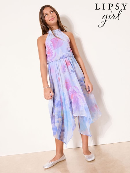 Lipsy Purple Floral Hanky Hem Halter Occasion Dress (5-16yrs)