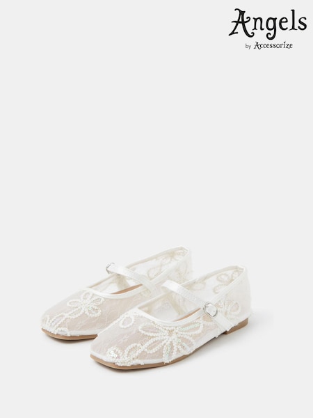 Angels By Accessorize Natural Sparkle Floral Mesh Ballet Flats