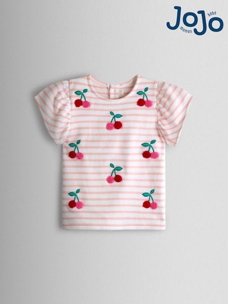 JoJo Maman Bébé Pink Applique Sleeve T-shirt