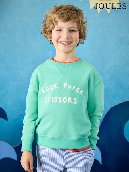 Joules Kids' Sundaze Turquoise Green Slogan Crew Neck Sweatshirt