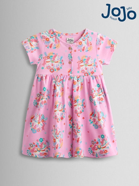 JoJo Maman Bébé Pink Button Down Pet In Pocket Dress