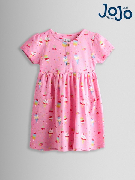 JoJo Maman Bébé Pink Ice cream Button Front Pet In Pocket Dress