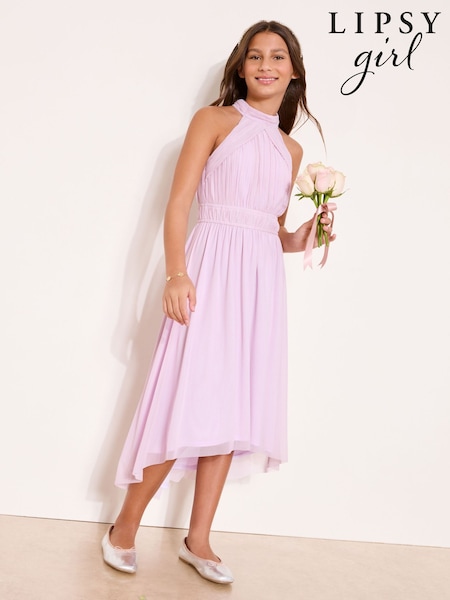 Lipsy Lilac Purple Halter Pleated Occasion Dress (7-16yrs)