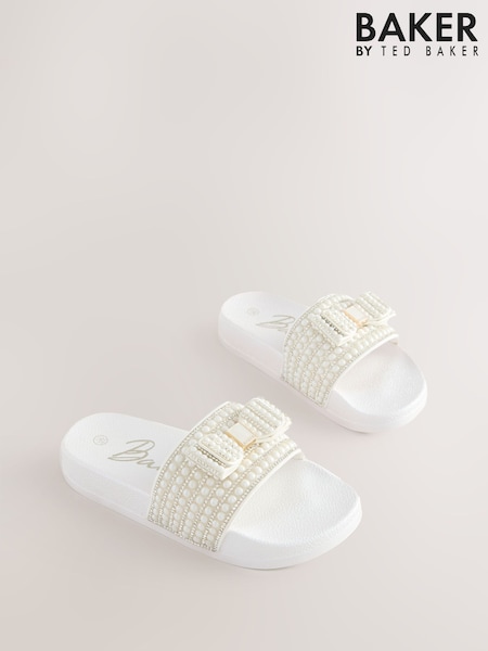 Baker by Ted Baker Embellished Pearl Sliders with Bow