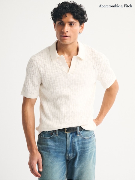 Abercrombie & Fitch White Short Sleeve Sweater Polo Shirt