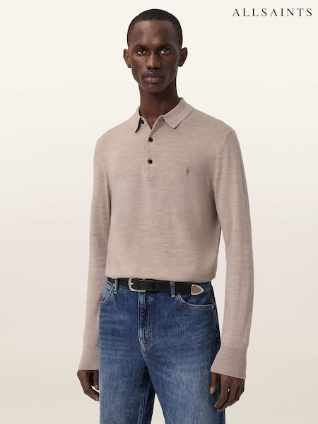 AllSaints Brown Mode Merino Wool Long Sleeve Polo Neck Jumper