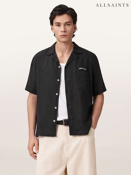 AllSaints Black Spotter Long Sleeve Button Up Shirt