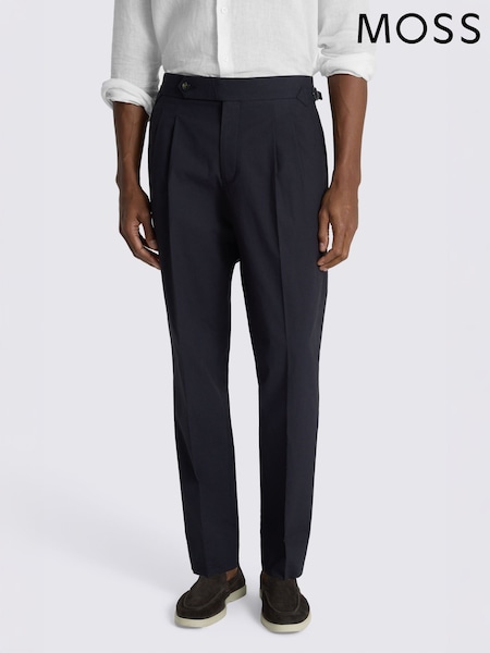 MOSS Navy Tailored Fit Stretch Chino Trousers