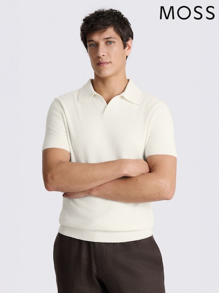 MOSS Off-White Bouclé Skipper Polo Shirt