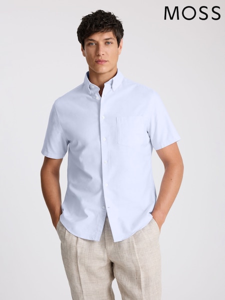 MOSS Blue Short Sleeve Washed Cotton Oxford Shirt
