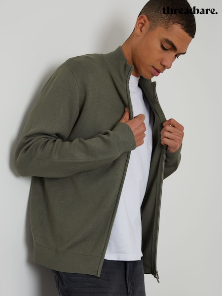 Threadbare Green Zip-Through Funnel Neck Knitted Cardigan