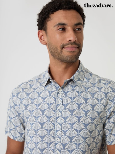 Threadbare Blue Linear Leaf Print Short Sleeve Shirt