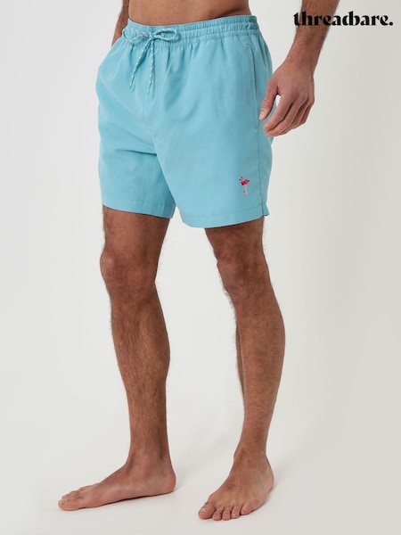 Threadbare Light Blue Flamingo Print Embroidered Quick Dry Swim Shorts