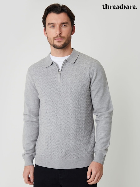 Threadbare Grey Textured Knit Quarter Zip Polo Jumper