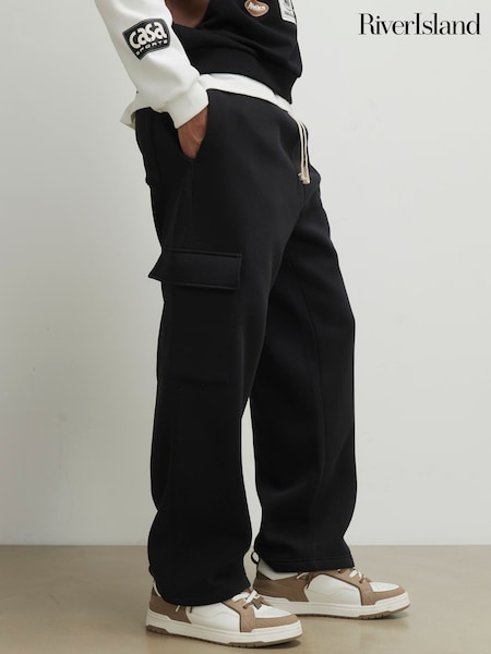 River Island Black Cargo Wide Fit Joggers