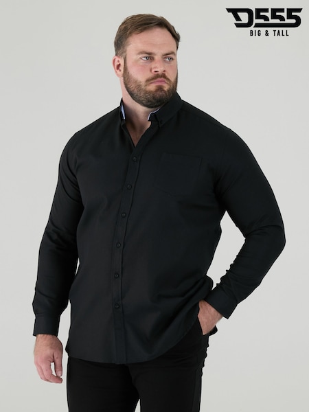 D555 Black RICHARD Classic Oxford Long Sleeve Button Down Shirt With Chest Pocket
