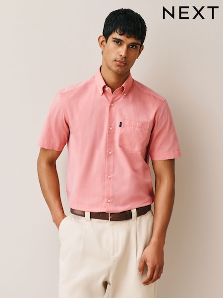Coral Pink Regular Fit Short Sleeve Easy Iron Button Down Oxford Shirt